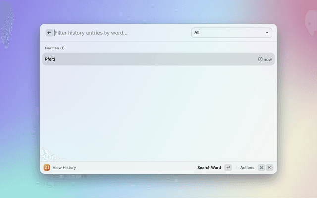 When searching, you can select a language from the list of available languages. If no language is selected, the extension will use the default language set in the command preferences.