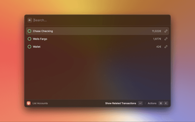 Show Related Transactions (↵): Take a peek at recent transactions on the selected account