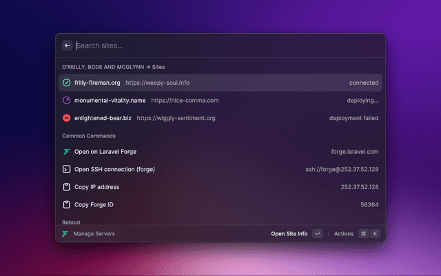 A command center for sites managed by Laravel Forge.