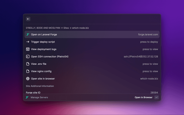 Source repo: https://github.com/KevinBatdorf/laravel-forge-raycast