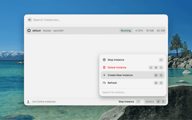 Colima is a lightweight alternative to Docker Desktop on macOS, but managing it means switching to the terminal for every colima start, docker ps, or docker run. This extension brings the full workflow into Raycast so you can start VMs, inspect containers, pull images, and run new containers — all from a single launcher, with keyboard shortcuts and instant feedback.