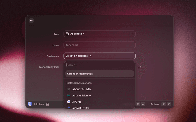 - โฑ๏ธ Launch Delays: Configure delays between opening items