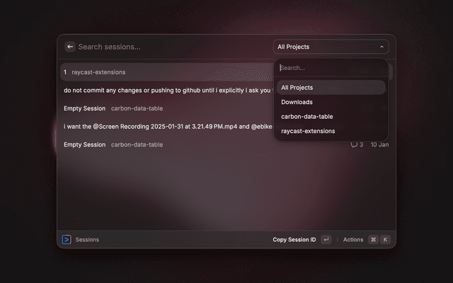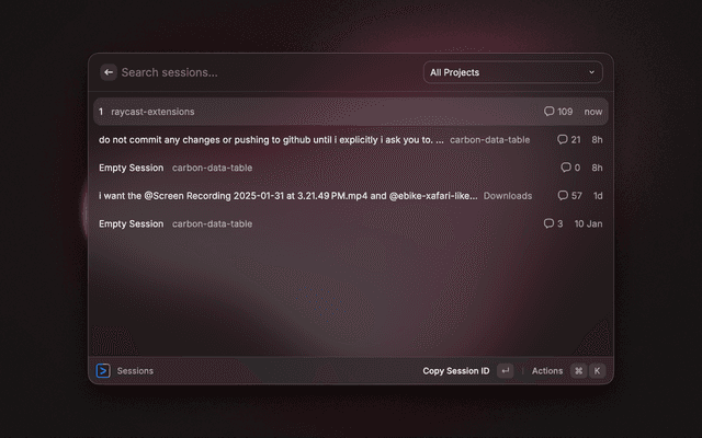 Gemini CLI lists all the gemini cli sessions, stats and more