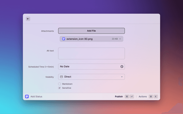 Toggle the "Sensitive" checkbox to mark the attached image as sensitive, or add a content warning to the status.