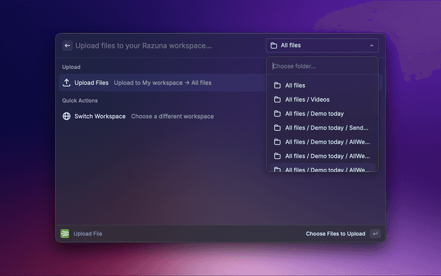 A Raycast extension for managing files in your Razuna workspace.