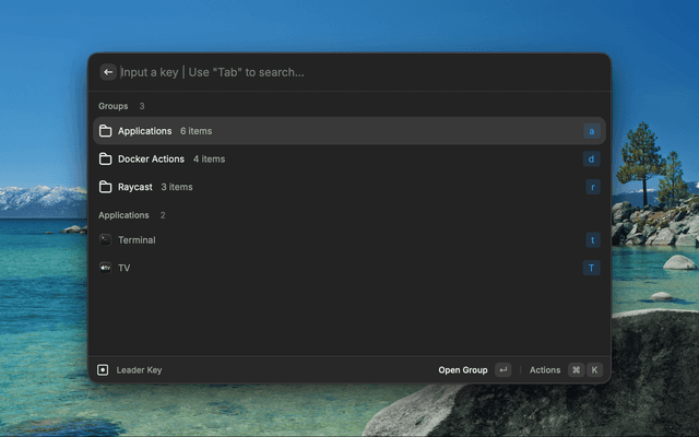 A Vim-style leader key extension for Raycast that enables quick navigation through hierarchical menus using single keystrokes. Organize your apps, commands, and shortcuts into logical groups for lightning-fast access.