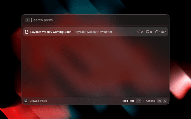 Browse and interact with the Raycast Weekly Newsletter directly from Raycast.