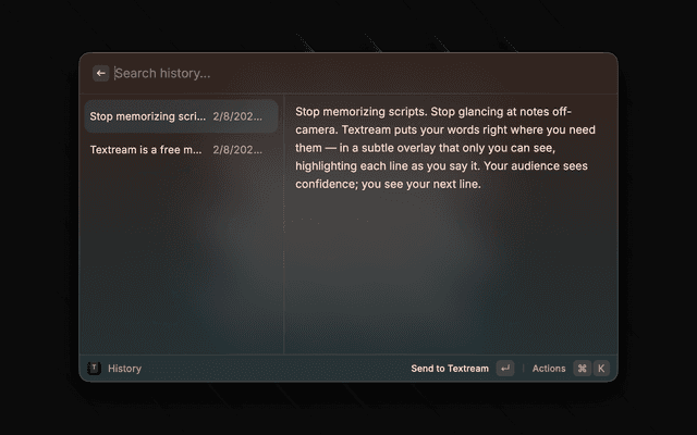 Raycast extension for Textream — a free macOS teleprompter app for streamers and presenters.