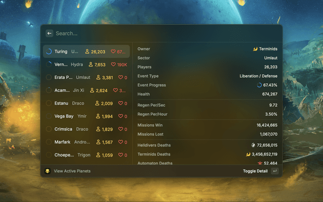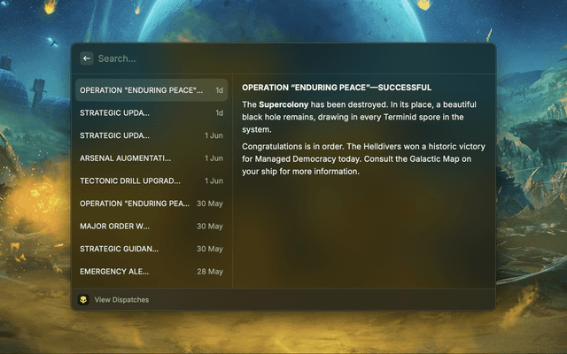 View Galactic War Status from Helldivers II