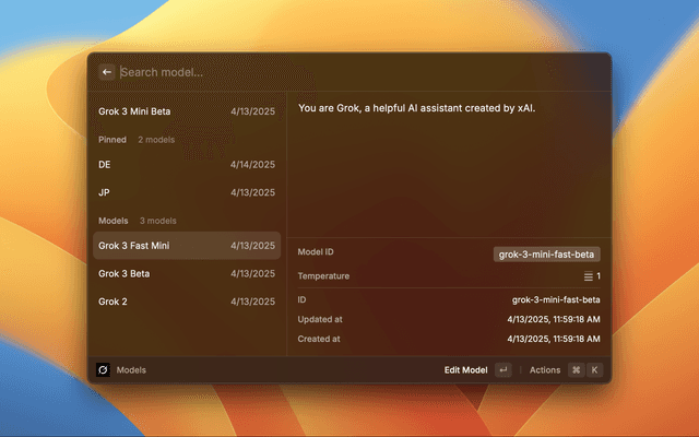 Props to the ChatGPT Raycast extension team for some of the functions and design choices / UX on here. Built with Grok.