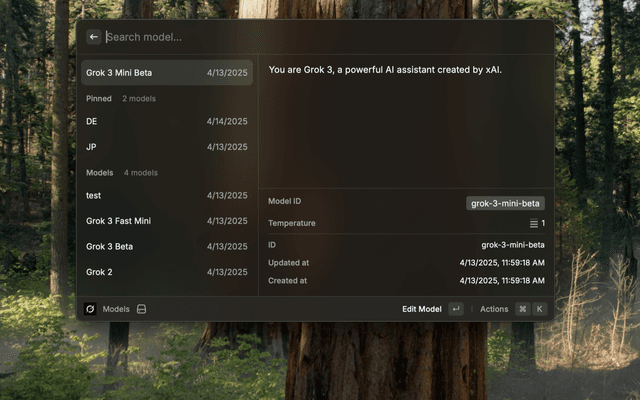- Dynamic Model Discovery: Automatically fetches available models from xAI's API, ensuring you always have access to the latest models.