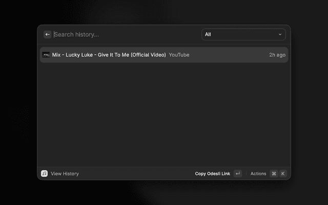 Get an Odesli link for the currently copied link of a song/album. Odesli is a service that provides smart music links. These links show a list of platforms you can hear the song/album on.