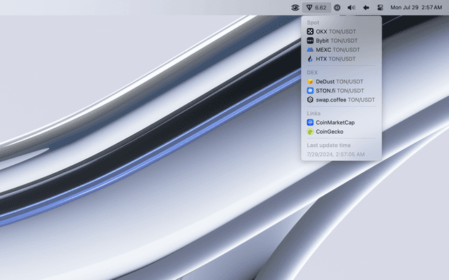 Keep an eye on Toncoin (TON) cryptocurrency price from your system menu bar. Stay informed and up-to-date with real-time price updates at a glance.