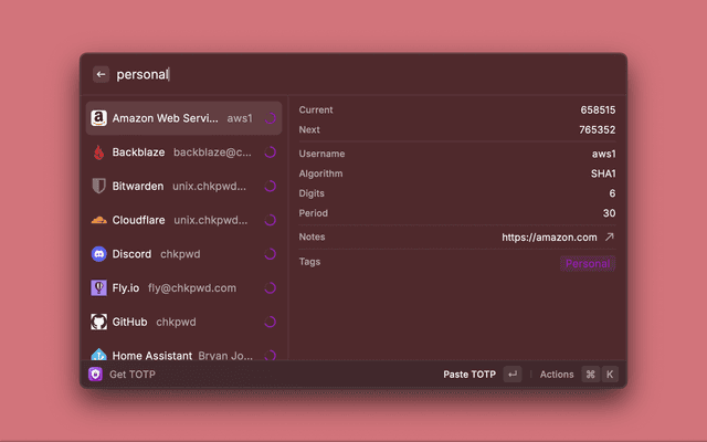 Import Secrets in Raycast.Search for an Ente Auth TOTP account