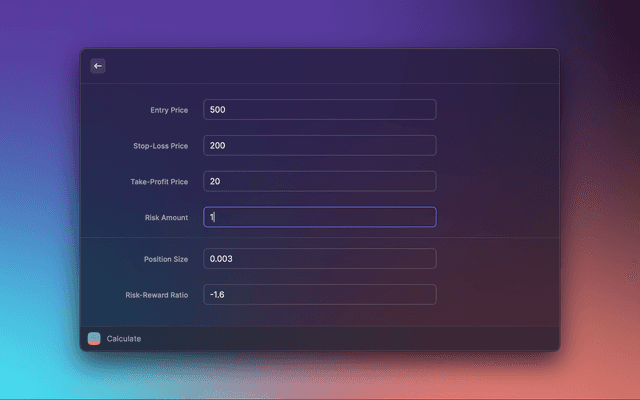 This extension helps traders to calculate their position size based on entry, stop-loss, take-profit prices and the amount they risk.
