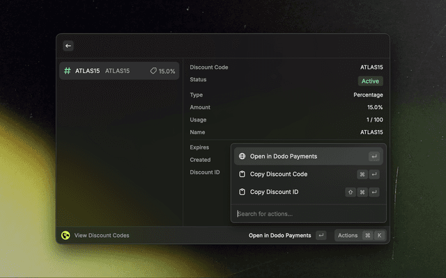 - Search for "Dodo Payments" and select any command