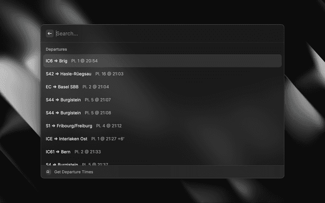 Gets departure times at train and bus stations in switzerland.