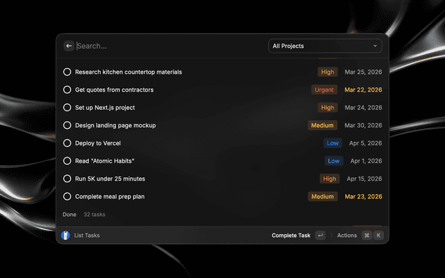Create and manage tasks in your self-hosted Vikunja instance directly from Raycast.