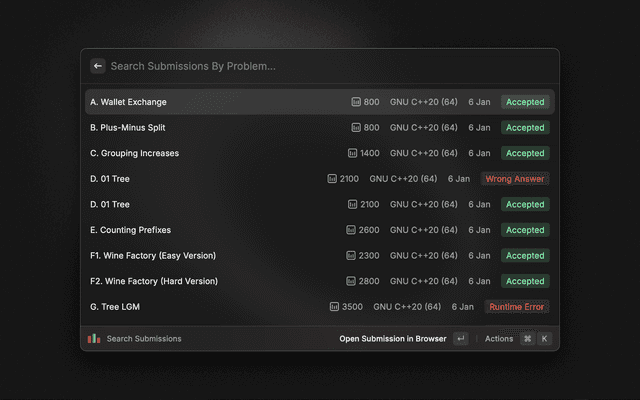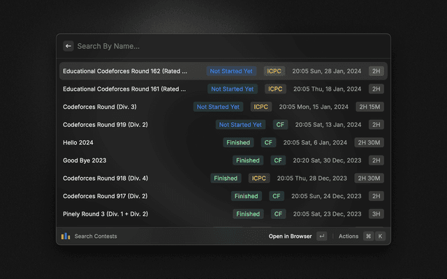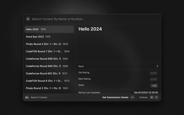 Gives details about latest contests and details about any handle