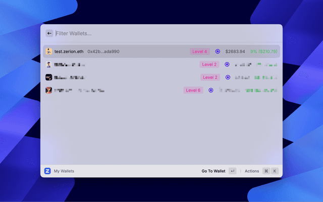 Monitor any account directly in the Raycast! Easy access your favorites, view all NFTs in a collection, and stay updated with real-time market insights with quick links to the Zerion web app!