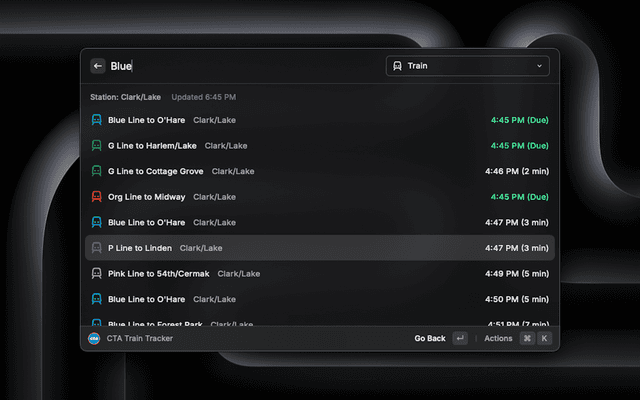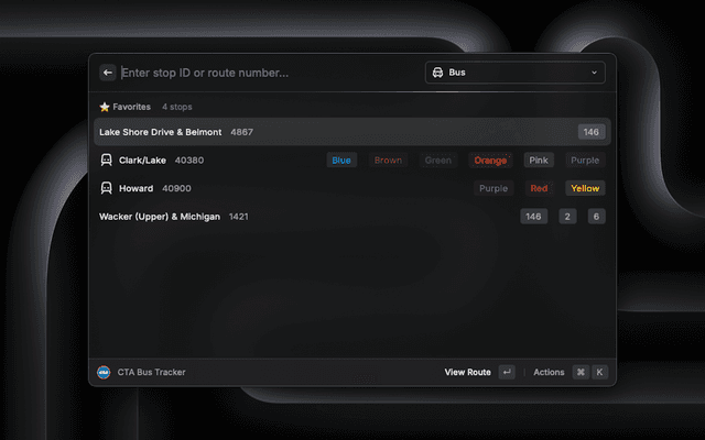Note: This is an unofficial extension and is not affiliated with or endorsed by the Chicago Transit Authority. All transit data is provided by the CTA's public API services.