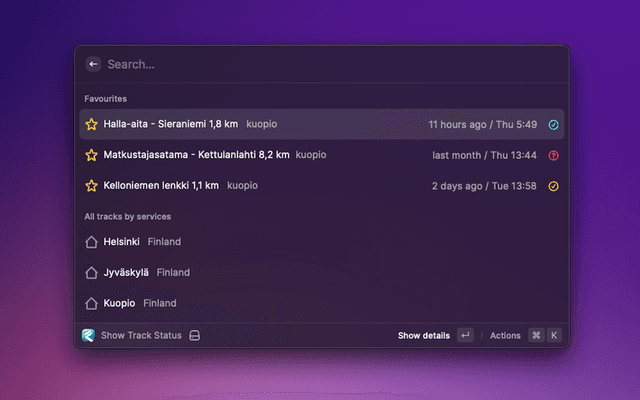 Show maintenance status for outdoors activity tracks like skiing or skating. Fetching data from the Fluent backend(s):