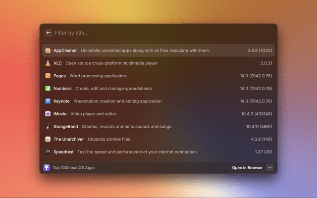 This extension scrapes lists of today's updates and the top 1000 popular apps from macupdater.net.
