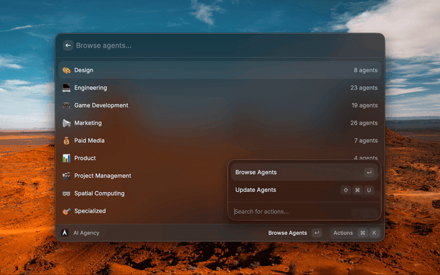 AI Agency downloads agent files from GitHub on first launch and stores them in the Raycast support cache. You do not need a local clone of the agency-agents repository.