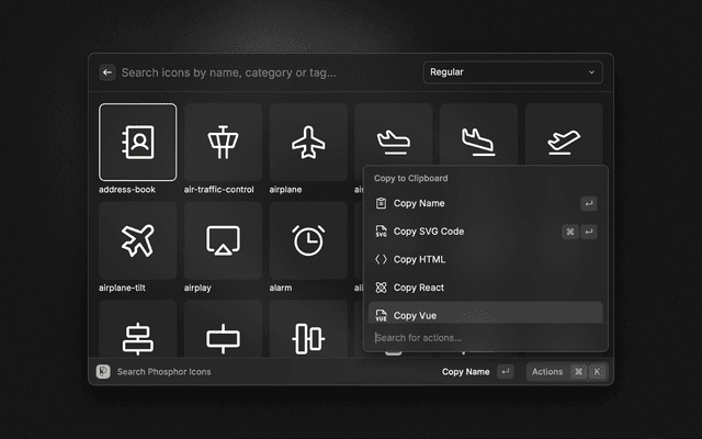 Search, preview and copy Phosphor Icons.