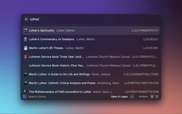 - Launch Logos once so the catalog database exists before running the Search Library command.