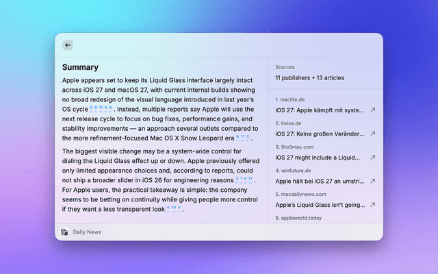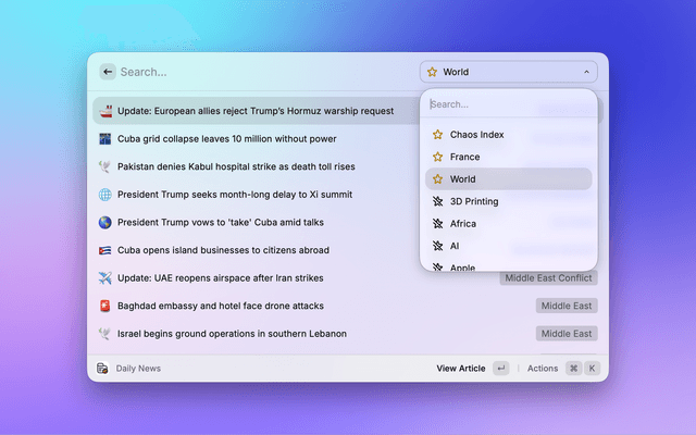 Read and explore Kagi News articles and sources seamlessly in Raycast.