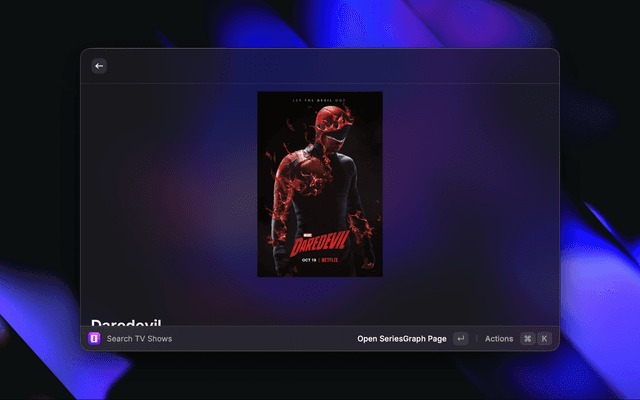 A Raycast extension to search TV shows and visualize episode ratings with graphs.