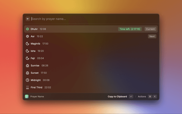This extension helps you to view adhan time for any location in the world with different calculation methods (calenders) using Aladhan.com API.