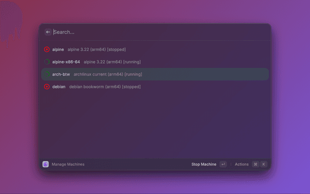 Manage OrbStack machines and containers directly from Raycast