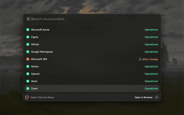 Search and check the status of services directly from Raycast, powered by IsDown.