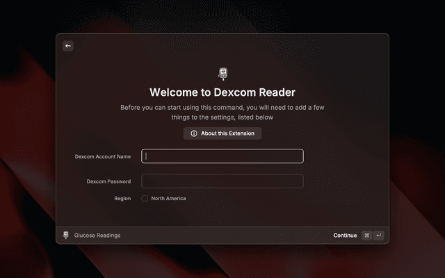 A Raycast extension that allows you to view your Dexcom glucose readings directly from Raycast. This extension provides a convenient way to monitor your blood glucose levels without having to open the Dexcom app on your phone.