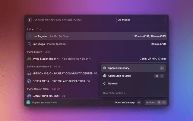- Filters: Filter departures by mode (Bus, Rail, Metro, etc.).