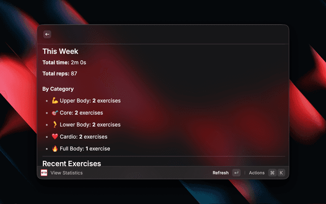 Start a random micro-workout. Perfect for quick breaks during your workday.
