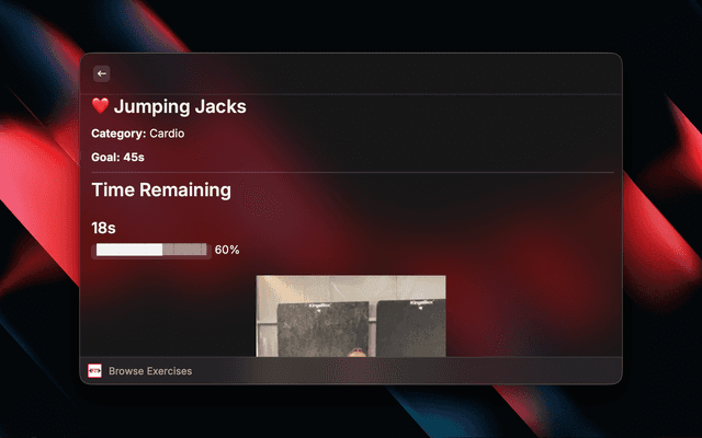 - Sends periodic reminders to exercise (configurable intervals: 30, 45, 60, 90, or 120 minutes)