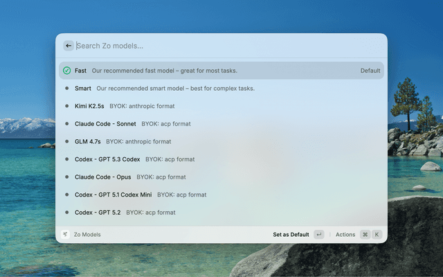 Raycast extension for Zo API chat, models, and activity.