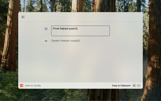 rules. This Raycast extension makes it easy to transliterate text on the fly,