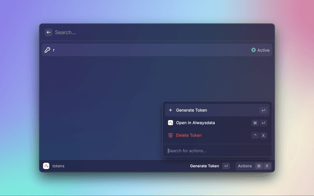 Navigate to TOKENSClick "Generate a token"Enter "Application" e.g. raycast-alwaysdataClick "Submit"Copy the token and Paste in Preferences or at first promptLooking for more infra extensions? Try the following: