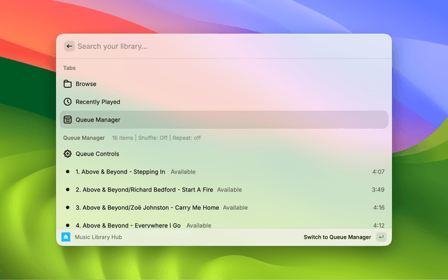 | Music Library Hub | Search, browse, and manage your Music Assistant library |